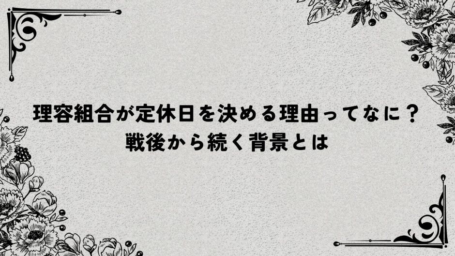 「どうして床屋さんは月曜日に休むんだろう?」「何か法律で決まっているのかな?」と、一度は疑問に思ったことがあるのではないでしょうか。