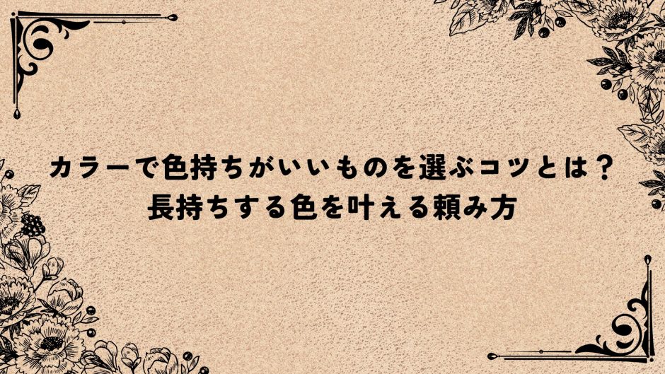 この記事では、色持ちが良いカラー系統TOP3を始め、美容室で色持ちを良くしてもらうオーダーのコツや、自宅で簡単にできる長持ちケア方法まで、すぐに実践できる情報だけを厳選してご紹介します。